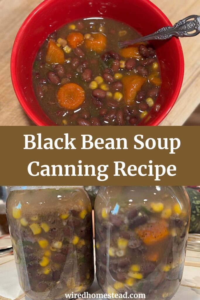 A: Black bean soup is a low-acid food, which means it must be processed in a pressure canner—not a water bath canner—to reach temperatures high enough to prevent botulism and ensure safety.